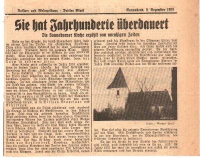 Offiziell ist Sonneborn rund 761 Jahre alt. Erstmals Urkundlich in einem Kaufvertrag eines Bürgers erwähnt, doch vermutlich existierte schon vor mehr als 1000 Jahren eine Ansiedlung Die Sonneborner sind als tatkräftiges und eigenwilliges Völkchen bekannt. Während der Reformationszeit wollte der Landesfürst im Jahre 1606 wertvolle Fresken in der alten Kirche überstreichen lassen. Aber das Vorhaben wurde nicht ausgeführt, die Bürger verjagten die Männer mit Heugabeln und Dreschflegeln. So ist die Kirche wie das ganze Dorf ein Juwel in Lippe geblieben.